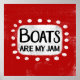 "Boats Are My Jam" est un design de texte amusant avec une forme d'accent blanc entourée de points blancs texturés.