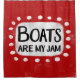 "Boats Are My Jam" est un design de texte amusant avec une forme d'accent blanc entourée de points blancs texturés.