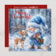 Cadeaux sous les pins tranquilles Cartes de Noël personnalisées Dans une forêt enneigée qui déborde de magie tranquille, un joyeux gnome habillé d'une tenue de style Père Noël bleu côtoie un jeune renne doux aux bois décorés. Les flocons de neige dérivent doucement autour d’eux, tandis que les cadeaux enveloppés reposent aux pieds du gnome, ajoutant une touche festive à la scène hivernale sereine. Leur regard affectueux et leur environnement paisible évoquent la chaleur, la générosité et l'émerveillement de la période des fêtes. 📜 Reverse Side Text : "L'amour fleurit le plus brillant dans le brouillard de neige." Nous vous souhaitons un très joyeux Noël (Votre Nom)