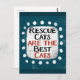 "Secourez les chats sont les meilleurs chats" est un design de texte mignon en turquoise avec du texte en noir et rouge, avec une forme d'accent blanc et des points blancs texturés blancs qui l'entourent.