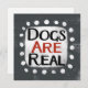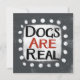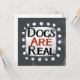 "Dogs Are Real" est un design de texte mignon en gris avec du texte en noir et rouge, avec une forme d'accent blanc et des points blancs à texture blanche.
