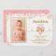 Pink & Gold Little Sweetheart 1er anniversaire de fête InvitationSweet et et fille première invitation à l'anniversaire avec des confettis de coeur rose et or