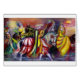 Elégant, lunatique, peinture artistique avec magie colorée de la nuit, la lune, féeries, chevaux en bleu vif, rouge, jaune, couleurs blanches.Peinture acrylique sur toile, peinture mixte média avec feuille d'or et d'argent.
