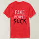 Un T-shirt rouge qui indique les "fausses personnes sucent"