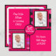 Cette invitation carré pour le premier anniversaire du bébé est moderne et contemporaine ! Le design présente un design de quatre carrés à l'avant. Il y a deux carrés roses chauds avec du texte dans une police ludique blanche. Le texte peut tous être customisé selon vos besoins. Les deux autres carrés ont une place pour les bébés alors et maintenant les photos. L'une est sur un arrière - plan gris foncé avec des pois dans les tons rose et violet. L'autre est sur un arrière - plan de rayures roses et violettes. Au centre se trouve un cercle rose chaud avec un fini noir. Au milieu du cercle se trouve un endroit pour le numéro d'anniversaire, qu'il s'agisse du 1er ou du 2ème, etc. Le revers de l'invitation est composé d'un arrière - plan noir avec une garniture rose vif, conçu pour ressembler à du papier déchiré, écrasé, comme les zones photographiques sur le devant. Il y a une zone rectangulaire centrale blanche avec du texte en alternance rose chaud et noir police. Le texte peut tous être customisé avec votre propre libellé.