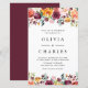 Invités Invitations avec ce faire-part de mariage d'automne. Il présente des guirlandes aquarelles de fleurs d'automne dans les tons orange, roux, rouge et bordeaux avec des accents de feuillage. Personnalisez en ajoutant des noms, des dates, des heures et d'autres détails. Ce faire-part de mariage floral d'automne est parfait pour les mariages de automne. Des éléments correspondants sont disponibles.