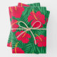 Voici de belles fleurs rouges d'Hibiscus sur motifs feuille de palmiers tropicaux verts. C'est beau d'habiller les feuilles de papier pour les fêtes avec thème tropical