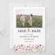 Les fleurs sauvages enregistrent la date avec une carte photo. Ce style élégant et élégant enregistrer l'invitation de date dispose de magnifiques Fleurs sauvages d'aquarelle peints à la main. Recherchez les éléments correspondants dans la collection White Fleur sauvage Dreams.