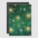 Arrière - plan de Noël vert avec des flocons de neige en or et bijoux verts. Des flocons dorés. Noël.