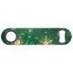 Arrière - plan de Noël vert avec des flocons de neige en or et bijoux verts. Des flocons dorés. Noël.