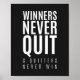 Ce design avec "Winners Never Quit and Quitters Never Win" est un cadeau parfait pour le bureau, les affaires, la salle de sport, la maison ou pour vous qui aimez les citations inspirantes, motivantes ou positives.