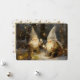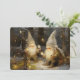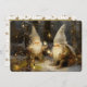 Cette carte de vœux enchantante capture un moment de calme de la magie de l'hiver, mettant en vedette deux gnomes barbus vêtus de hauts chapeaux pointus blancs nichés dans une forêt enneigée au crépuscule. Rendu dans un style classique et pictural, le duo fantaisiste est représenté illuminant l'obscurité en tenant et en enfilant des ampoules chaudes de style vintage qui jettent une lueur dorée et confortable contre les troncs d'arbres gris-bleu frais. Le contraste entre les bois silencieux et givrés et la radiance invitante des lumières crée une atmosphère chaleureuse de paix et de préparation festive, parfaite pour partager un message d'espoir et d'émerveillement en cette saison.
