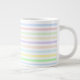 Allumez-vous avec un joli mélange de couleurs pastel à bandes fines sur une tasse en céramique jumbo.