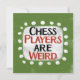 "Les joueurs d'échecs sont bizarres" est un design de texte mignon en vert avec du texte en noir et rouge, avec une forme d'accent blanc et des points blancs texturés.