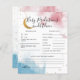 Amusez-vous sur le thème de la lune fille et garçon jumeaux baby shower prédictions bébé et carte de conseil avec un aquarelle art de ciel rose et bleu avec faux or brillant lune. Les textes sont modifiables. Un jeu parfait à jouer pendant la douche et sera certainement un grand gardien! La carte demande aux invités de prédire à quoi ressemblerait le bébé.