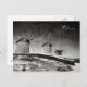 Photo en noir et blanc des célèbres moulins de Mykonos