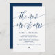 Belle calligraphie moderne bleue marine, annonce de mariage en fuite, carte d'invitation (les nouveaux mr et mrs). C'est parfait pour votre réception de mariage et votre fête de célébration post-mariage. Ajoutez vos détails dans la même police / lettrage.
