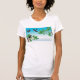 Trois beaux oiseaux volant autour d'un arbre. Ce design semble vraiment efficace sur ce T-shirt féminin