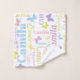 Joli petit plan graphique papillons personnalisés nom de serviette ensemble. Cette serviette molle violet, bleu, rose, vert, jaune et corail textuelle typographique peut également être customisé avec votre propre nom court, dit actuellement Camila. D'autres noms et couleurs sont disponibles, pour l'aide avec des noms plus longs et des demandes s'il vous plaît contactez-moi. Art et design originaux par Sarah Trett pour www.mylittleeden.com