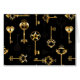 Seamless pattern of antique, gold and silhouette keys on black background.