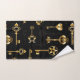 Seamless pattern of antique, gold and silhouette keys on black background.