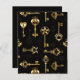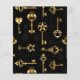 Seamless pattern of antique, gold and silhouette keys on black background.