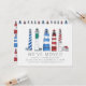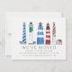 Faire-part mobile colorée avec une rangée de phares rouges, blancs et bleus sur un arrière - plan blanc avec un dos de coordination pour une touche spéciale supplémentaire.
