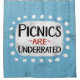 "Picnics Are Underrating" est un design de texte amusant et encombrant, avec une forme d'accent blanc entourée de pois blancs mignons.