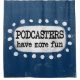 "Podcasters Have More Fun" est un design de texte mignon avec une forme d'accent blanc entourée de points blancs.