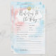 Cette carte de baby shower dispose d'une police moderne script avec arrière - plan couleur rose et bleu aquarelle, parfait pour une douche révélateur genre! Pour des jeux et des cartes plus drôles et uniques, veuillez consulter la collection ci-dessous.