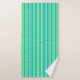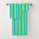 Serviette sertie dans un motif de larges rayures turquoise et vert citron, accentuée de bandes étroites de blanc et bleu marine