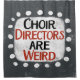 "Les réalisateurs chorales sont bizarres" est un design de texte mignon en gris avec du texte en noir et rouge, avec une forme d'accent blanc et des points blancs texturés blancs qui l'entourent.