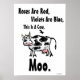 Les roses Sont Rouges, Les Violets Bleus, Voici Une Vache, Moo. Cette affiche drôle est la décoration parfaite... Il comprend le poème ci-dessus ainsi qu'une illustration amusante d'une vache noire et blanche. Amusant, bizarre, et juste le truc pour ceux qui ont un sens de l'humour un peu bizarre et un amour pour la mauvaise poésie. Customise-le ! Vous pouvez modifier le libellé ou la couleur de l'arrière - plan. Faites ce que vous voulez et faites-le le vôtre !