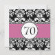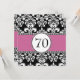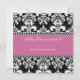 Invitations élégantes personnalisables d'anniversaire de damassé noire et blanche. Customisez avec votre information utilisant les invites OU changez la couleur du ruban et ajoutez plus de texte en choisissant la "personnaliser il" option et en employant les menus d'édition. Motif et conception luxueux de damassé pour vos invitations spéciales d'anniversaire