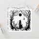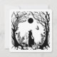 Sorcières dans le Front de Bois : Silhouette d'une sorcière et sa chauve-souris dans les bois sous la pleine lune Retour : Sorcières agitant une "Fête d'Halloween méchante" tandis que les corbeaux regardent Personnalisable "Fête d'Halloween métique" Date et heure Nom et adresse Black White