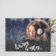 Célébrez les fêtes avec cette carte de Noël chic avec script moderne et chutes de neige.