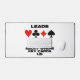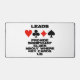 Les joueurs de pont apprécieront ce tapis de bureau avec les quatre costumes de carte ainsi que le truisme de pont suivant : "Leads fournissent des indices significatifs sur l'endroit où les cartes clés mentent". Matelas de bureau de conseil de pont mémorable pour tout joueur de pont qui est fréquemment en défense et qui tente d'évaluer où se trouvent les cartes-clés!