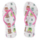 Des tongs à bulles blanches réalisées en chouettes de dessins animés couleur rose, marron, vert et turquoise et en pois roses. Personnalisez le texte marron, sur le bon curseur pour vous-même ou comme une idée de cadeau amusante. Parfait pour toutes les occasions.