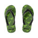 Les tongs de dinosaure vert t-rex personnalisés pour enfants. Design vert chasseur avec nom personnalisé de l'enfant. Jolie idée cadeau d'anniversaire pour les garçons. Amusement pour l'été, plage et piscine. Cool motif Tyrannosaurus rex avec nom personnalisé.