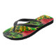 Les tongs du Rasta Reggae Party. Design Red Gold Green et Black avec Rasta Reggae et symbologie jamaïcaine à la boutique Rasta Gear.