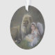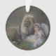 Un ange gardien embrasse un agneau, tous deux reposent à côté d'un lion tandis que la Paix enveloppe la terre. Peinture à l'huile de l'artiste Liz Viztes. Vacances 2020.