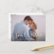 Un simple mariage script enregistrer la conception de la carte de date avec des lettres de script blanc élégant. N'hésitez pas à personnaliser l'image et le texte.