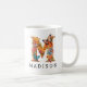 Une belle tasse à café personnalisée avec un monogramme "M" à papillon et à lettre fleurie, avec des illustrations décoratives aquarelle fleurie et feuillage de jardin. Vous pouvez facilement customiser cette tasse avec votre nom ou créer un cadeau unique pour vos proches.