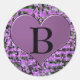 Lettre 'B' sur autocollant rond coeur violet