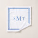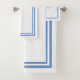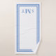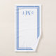 Ensemble de serviettes de bain personnalisées avec élégant design minimaliste de trois lettres monogramme initial en bleu et blanc.