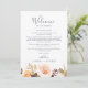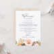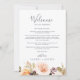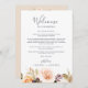 Ces cartes de bienvenue et itinéraires rustiques mariage en terre sont parfaites pour un mariage de automne. L'élégante décoration de tons de terre comprend des fleurs rustiques d'aquarelle en terre cuite, en cuivre, orange brûlé, pêche, rose roux et blanc crème avec style boho vintage. Le recto de la carte comporte une lettre de bienvenue et le verso de la carte indique l'itinéraire du mariage. Ces notes sont parfaites pour les mariages de destination et les sacs de bienvenue des clients de l'hôtel.