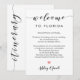 Cette carte moderne et élégante est l'encart parfait pour vos sacs d'accueil de l'hôtel. Entrez les principaux événements et une note customisée pour aider vos invités à naviguer le week-end.