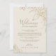 Ces cartes d'accueil et d'itinéraire à la crème fleurie dorée sont parfaites pour un mariage élégant. Le design boho moderne présente un arrangement fantaisiste de faux feuilles d'or dessiné à la main, de feuilles et de botaniques sur un arrière - plan crème. Le recto de la carte comporte une lettre de bienvenue et le verso de la carte indique l'itinéraire du mariage sur un arrière - plan gris foncé. Ces notes sont parfaites pour les mariages de destination et les sacs de bienvenue des clients de l'hôtel. Remarque : Ce design ne comporte pas de véritable feuille d'or. C'est un graphisme de haute qualité fait pour ressembler à du papier doré.