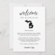 Partagez un message de bienvenue pour vos invités mariages du Michigan ainsi qu'un itinéraire ou l'horaire des événements du week-end. Avant affiche votre message de bienvenue avec une carte silhouette de l'état du Michigan avec un coeur à l'intérieur. Personnalisez l'envers avec votre itinéraire de mariage ou de week-end mariage. Parfait pour inclure dans l'hôtel des sacs de bienvenue ou livrer dans les chambres de vos invités.