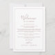 Ces cartes minimalistes de mariage rose lettre d'accueil et itinéraires sont parfaites pour un mariage simple. Le design romantique moderne est composé d'or rose classique et de typographie blanche associée à une calligraphie rustique mais élégante avec un style vintage lettré à la main. Personnalisable dans n'importe quelle couleur. Gardez le design simple et élégant, en l'état, ou personnalisez-le en ajoutant vos propres graphiques et artwork. Le recto de la carte comporte une lettre de bienvenue et le verso de la carte indique l'itinéraire du mariage. Ces notes sont parfaites pour les mariages de destination et les sacs de bienvenue des clients de l'hôtel.
